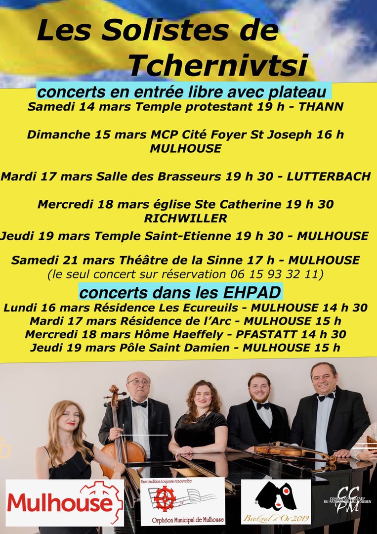 Les Solistes de Tchernivtsi bien connus en tant que partenaires de l’Orphéon Municipal de Mulhouse, se produisent dans des lieux différents du 14 mars au 22 mars 2026.